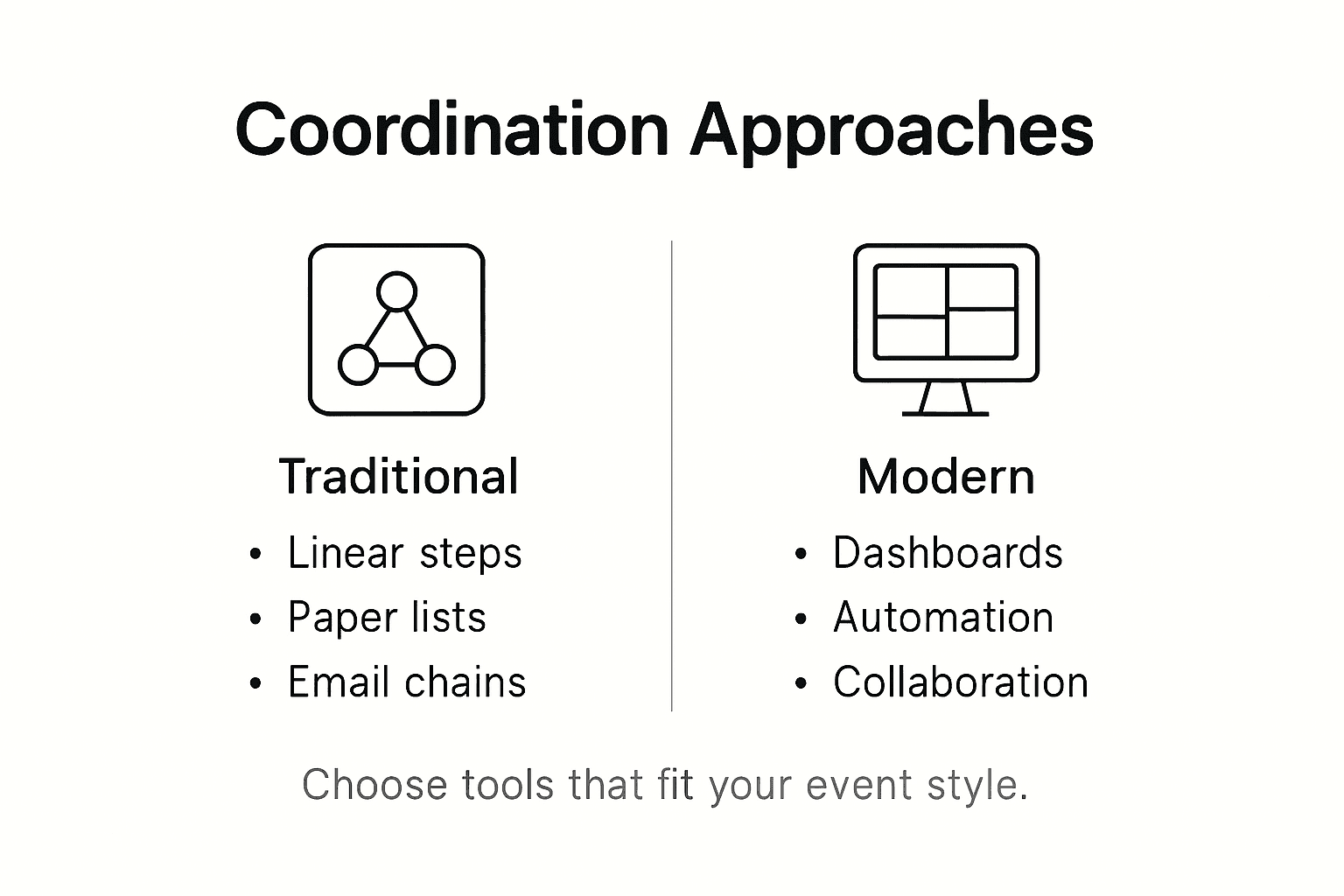 Here's a comparison of event coordination approaches and their ideal use cases: