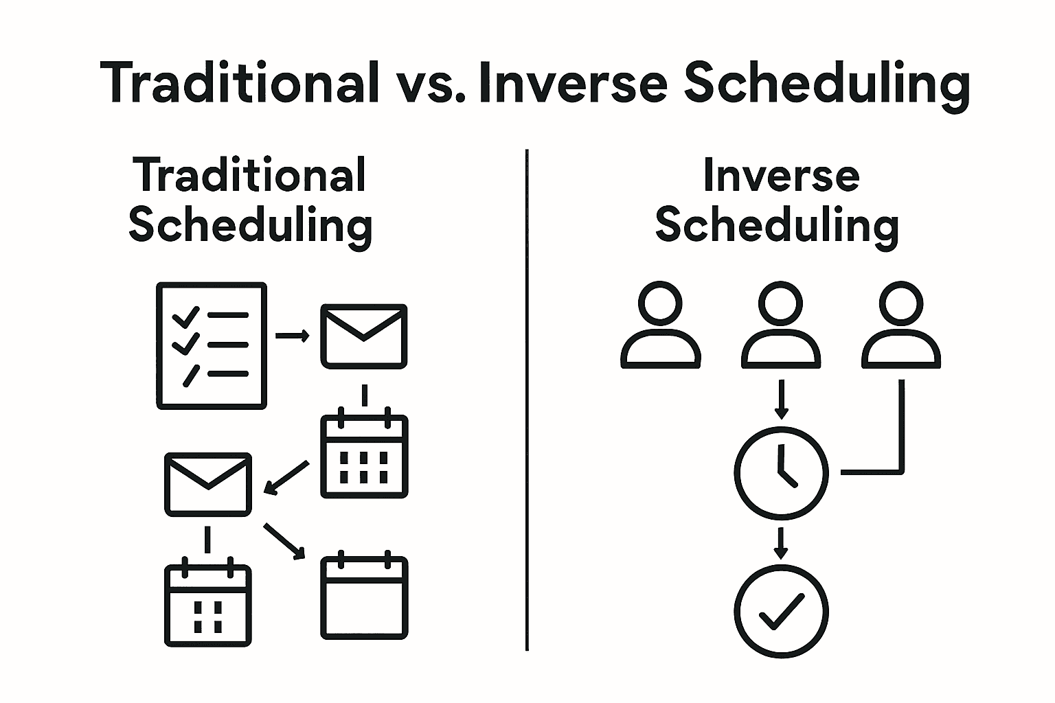 | Inverse Scheduling | Participants mark unavailable times | Reduces negotiation effort | Dynamic, large, or remote groups |